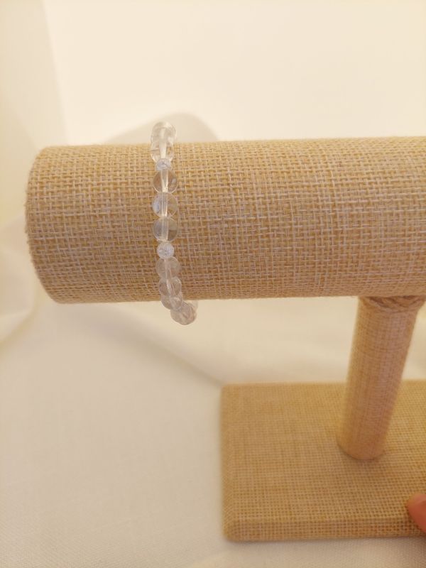 Bracelet en Cristal de roche Diamètre des perles : 4.5 – 7 mm Tour de poignet : 18 cm Le Cristal de Roche est un pierre qui amplifie les énergies. Il aide à la méditation en renforçant la concentration. Il développe la clairvoyance et l'imagination. Le Cristal de Roche recharge et purifie les autres cristaux. Purification : Fumigation ou Eau Rechargement : Soleil ou Lune