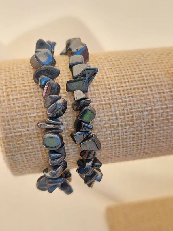 Bracelet baroque en Hématite Tour de poignet 17-18 cm L'Hematite est une pierre d'ancrage et permet de retrouver son calme. Elle aide à la communication et à la concentration. L'hématite apporte confiance en soi et atténue la timidité PURIFICATION : Encens RECHARGEMENT : Soleil