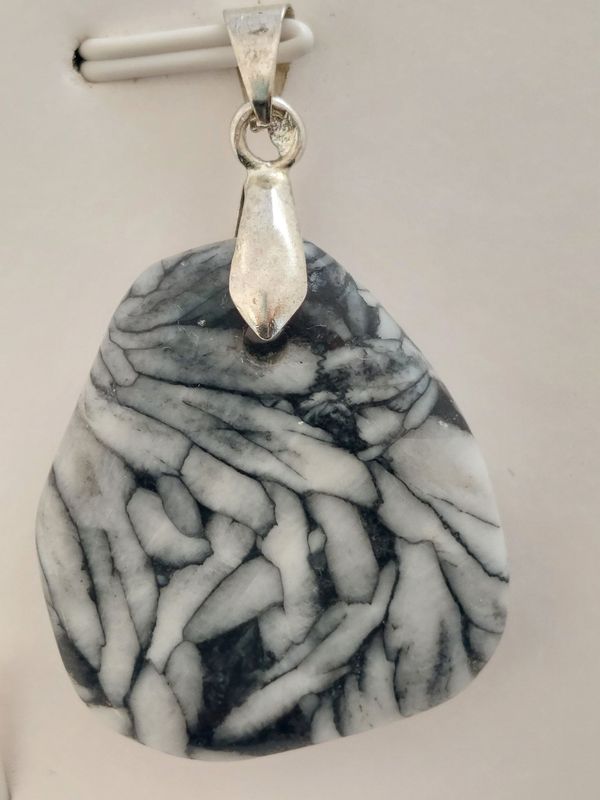 Pendentif en Pinolite Bélière en métal argenté Dimension : 3 x 2.5 cm La Pinolite est une pierre d’apaisement. Elle atténue les sensations d’anxiété, d’angoisse et la peur de la solitude. Elle redonne la sérénité et la paix intérieure. PURIFICATION : Eau ou Fumigation RECHARGEMENT : Soleil doux ou amas de quartz